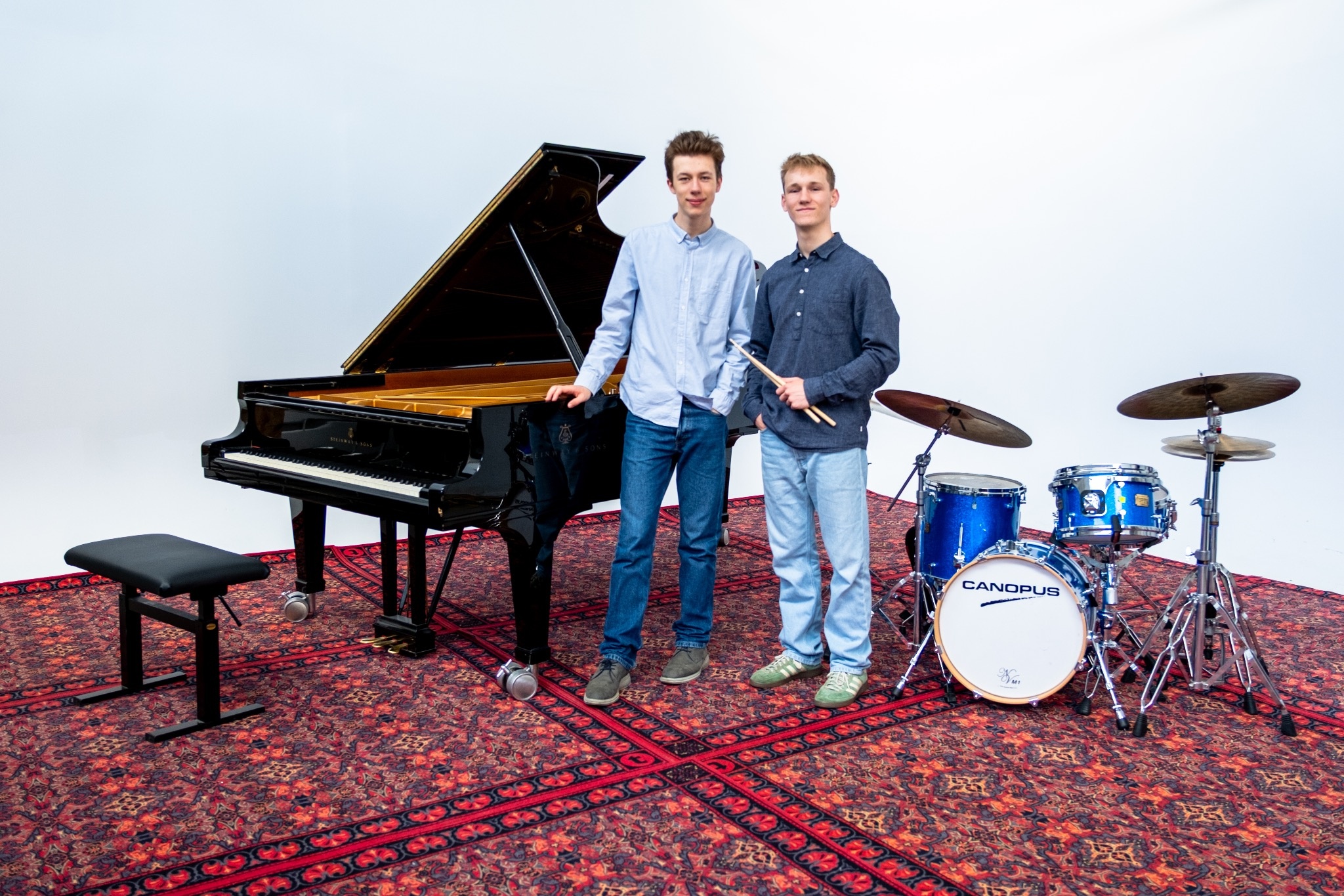 Bufte und Klimperkasten“ ist ein modernes Jazz-Duo, bestehend aus dem Pianisten Leon Lübken (*2005, Worpswede) und dem Schlagzeuger Jakob Wroblewski (*2004, Lüneburg). Für die Begegnung „Jugend jazzt“ fanden sich die beiden 2021 kurzfristig zusammen und gründeten ihr gemeinsames Projekt. Mit wenigen technischen Mitteln schaffen sie viel Raum für ein kreatives, energiegeladenes Zusammenspiel, das sich auch in ihren Eigenkompositionen widerspiegelt. Das Duo steht für Chaos mit Konzept. Seit 2024 studieren beide Musik: Leon Jazzklavier an der Hochschule für Musik und Theater Leipzig bei Michael Wollny und Frank Chastenier, Jakob Jazzschlagzeug an der Hochschule für Musik, Theater und Medien Hannover bei Eva Klesse. Trotz der räumlichen Distanz führen sie ihre Zusammenarbeit konsequent fort und entwickeln Bufte und Klimperkasten stetig weiter.